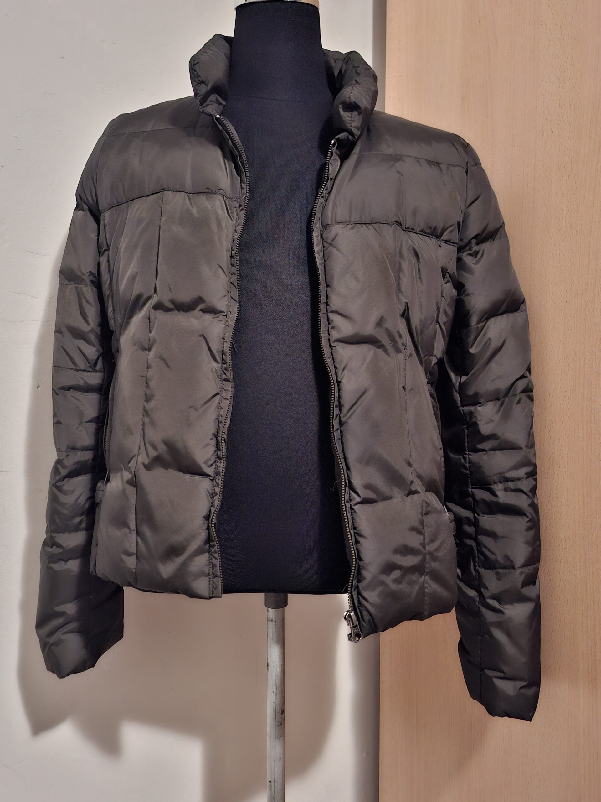 Warme gewatteerde jas met donsvulling voor koude dagen. Staande kraag voor extra bescherming. Praktische steekzakken. Geschikt voor dames die van comfortabele en warme winterkleding houden. Perfect voor herfst en winter.