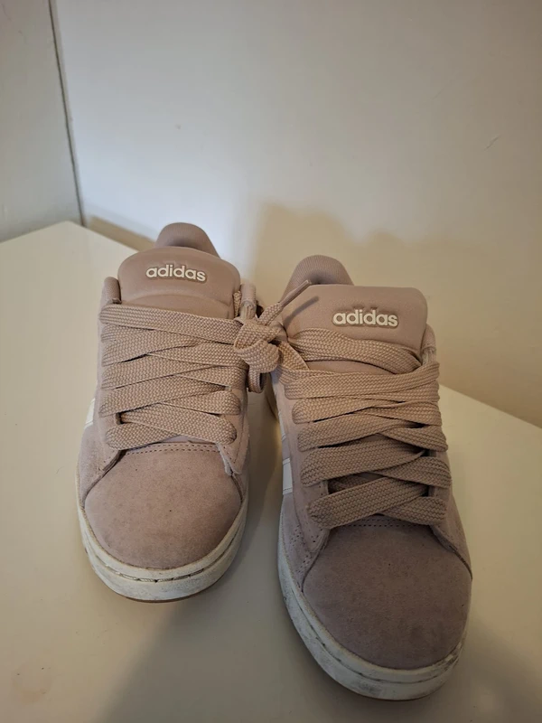 Stijlvolle Adidas Grand Court sneakers in oudroze suède, maat 39 1/3. Voorzien van een comfortabele Cloudfoam inlegzool en een klassieke rubberen zool. In goede, gedragen staat.