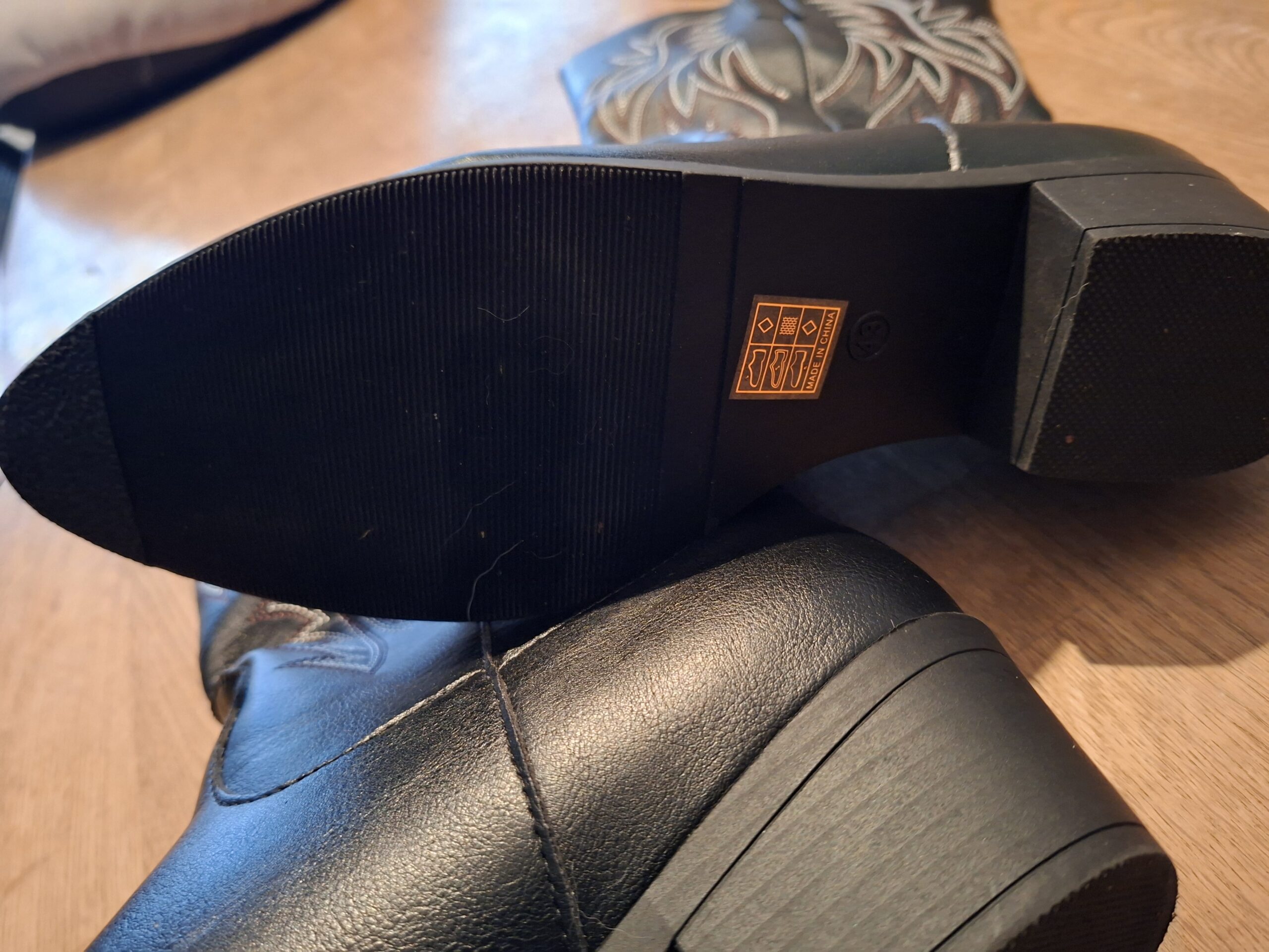 Cowboylaarzen zwart western stiksel. Blokhak spitse neus. Maat 43.