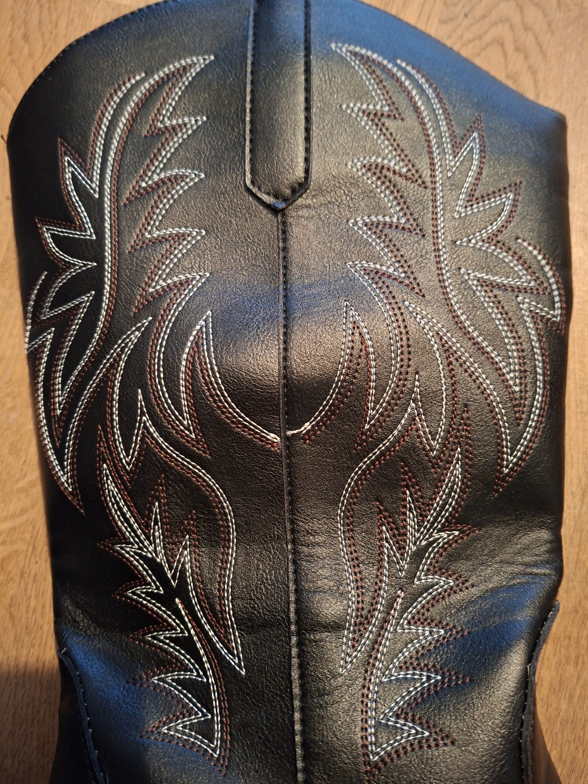 - Kleur: Zwart met wit/rood western stiksel