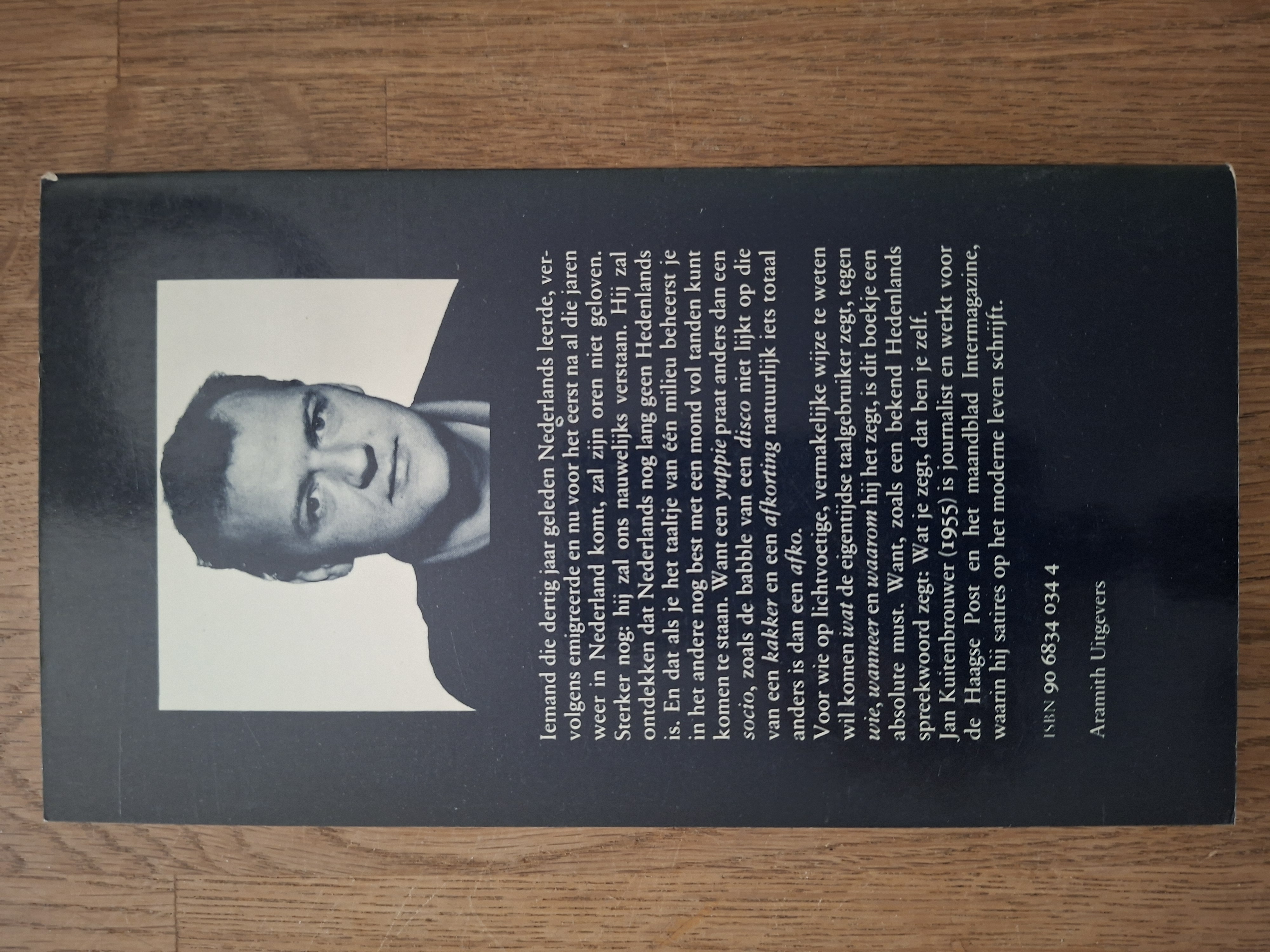 Jan Kuitenbrouwer (1955) is journalist en werkt voor de Haagse Post en het maandblad Intermagazine, waarin hij satires op het moderne leven schrijft. Dit boek heeft een opvallende omslag met grote geel-oranje typografie op een donkerblauwe achtergrond. Op de achterkant staat een portretfoto van de auteur. Een must voor taalliefhebbers en iedereen geïnteresseerd in taalontwikkeling.