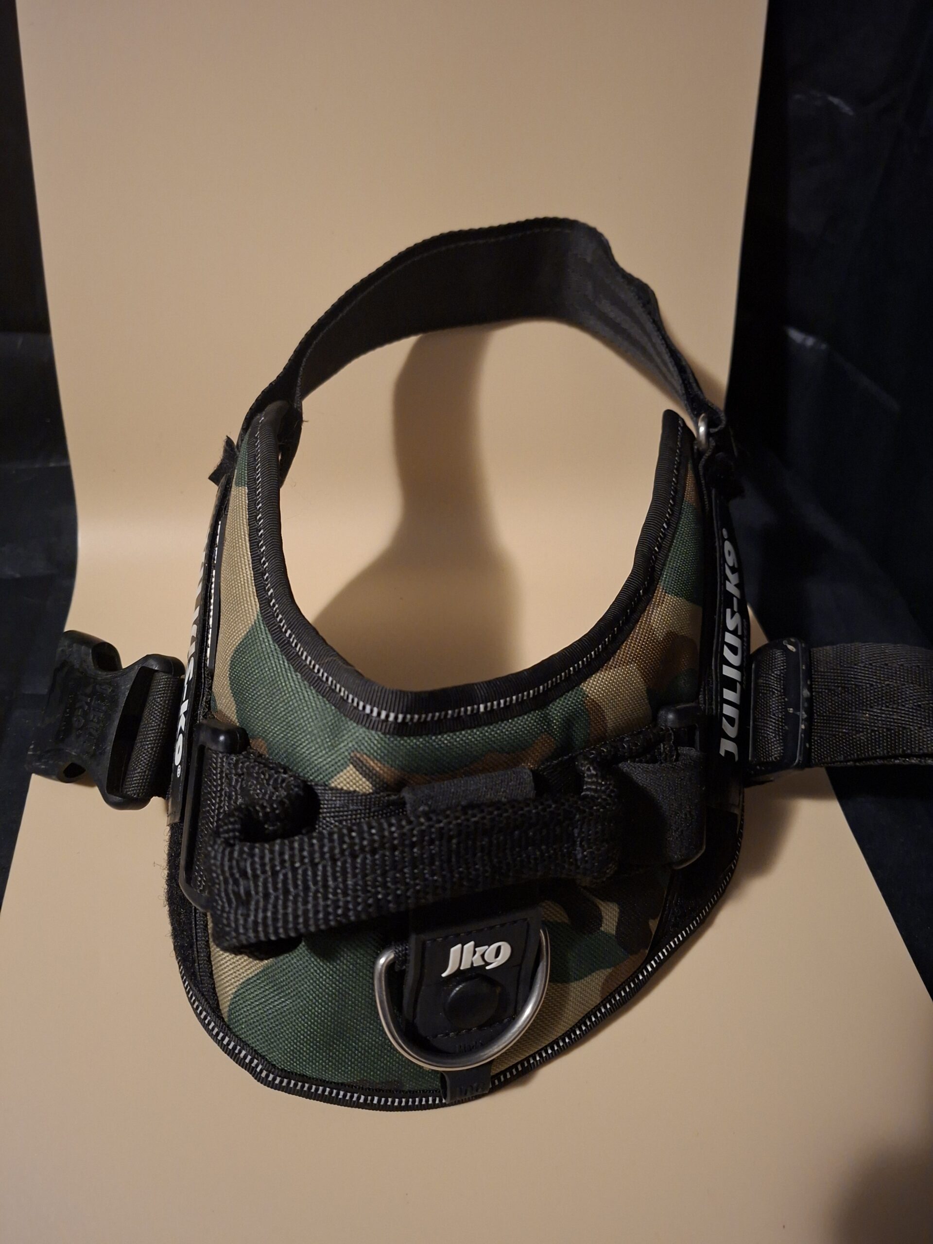 Te koop: Een origineel Julius-K9 IDC Powerharness in de stoere camouflage print. Dit is een van de meest populaire en robuuste hondentuigen op de markt, bekend om zijn ergonomische ontwerp en duurzaamheid. Het tuig is voorzien van een originele Julius-K9 label en QR-code.