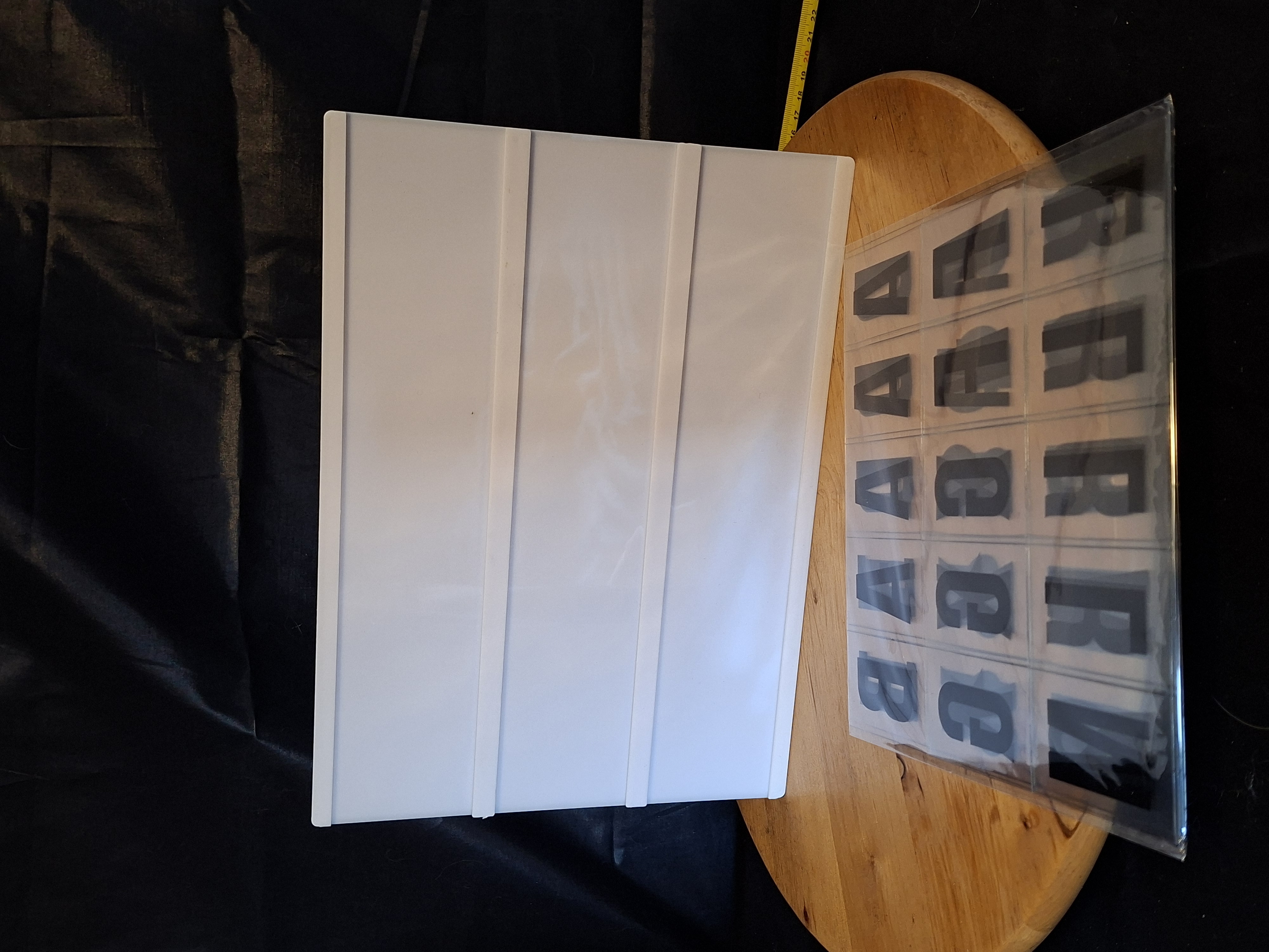 Trendy LED lightbox van Stern Fabrik. Afmetingen 30x22x4,3cm. Inclusief 85 tekens (letters, cijfers en symbolen). Werkt op 6x 1,5V AA batterijen (niet inbegrepen). LED verlichting voor sfeervolle uitstraling. Wit kunststof met 3 regels. Perfect voor persoonlijke boodschappen. Nieuw in verpakking.