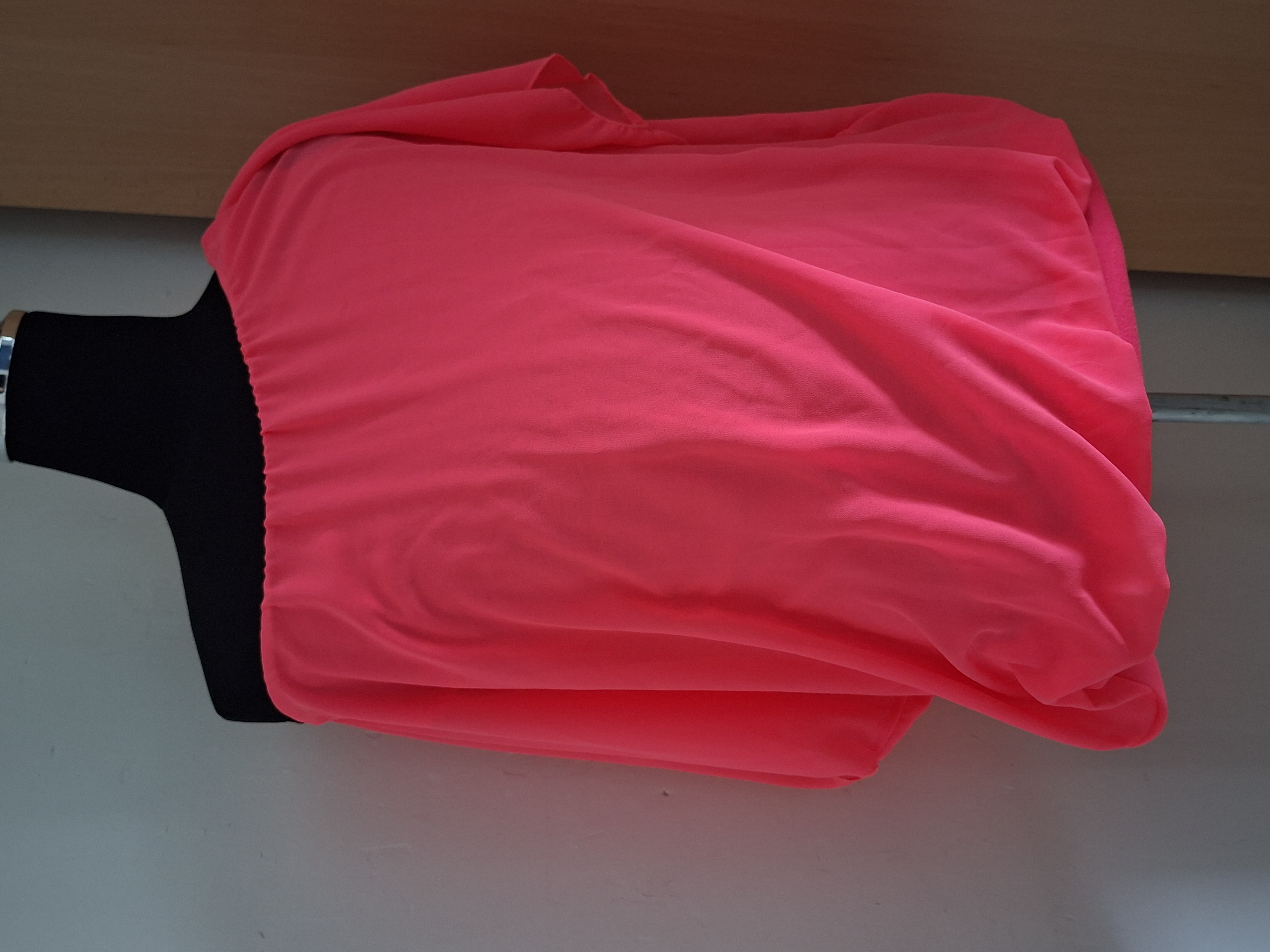 Opvallende fluor roze off-shoulder top gemaakt in Italië. Maat L. Trendy off-shoulder model met elastische hals. Vleermuismouwen voor luchtige pasvorm. Licht doorschijnend viscose materiaal. Elastische zoom onderaan. Opvallende neon kleur die echt uitspringt. Perfect voor zomerse dagen, festivals of uitgaan.