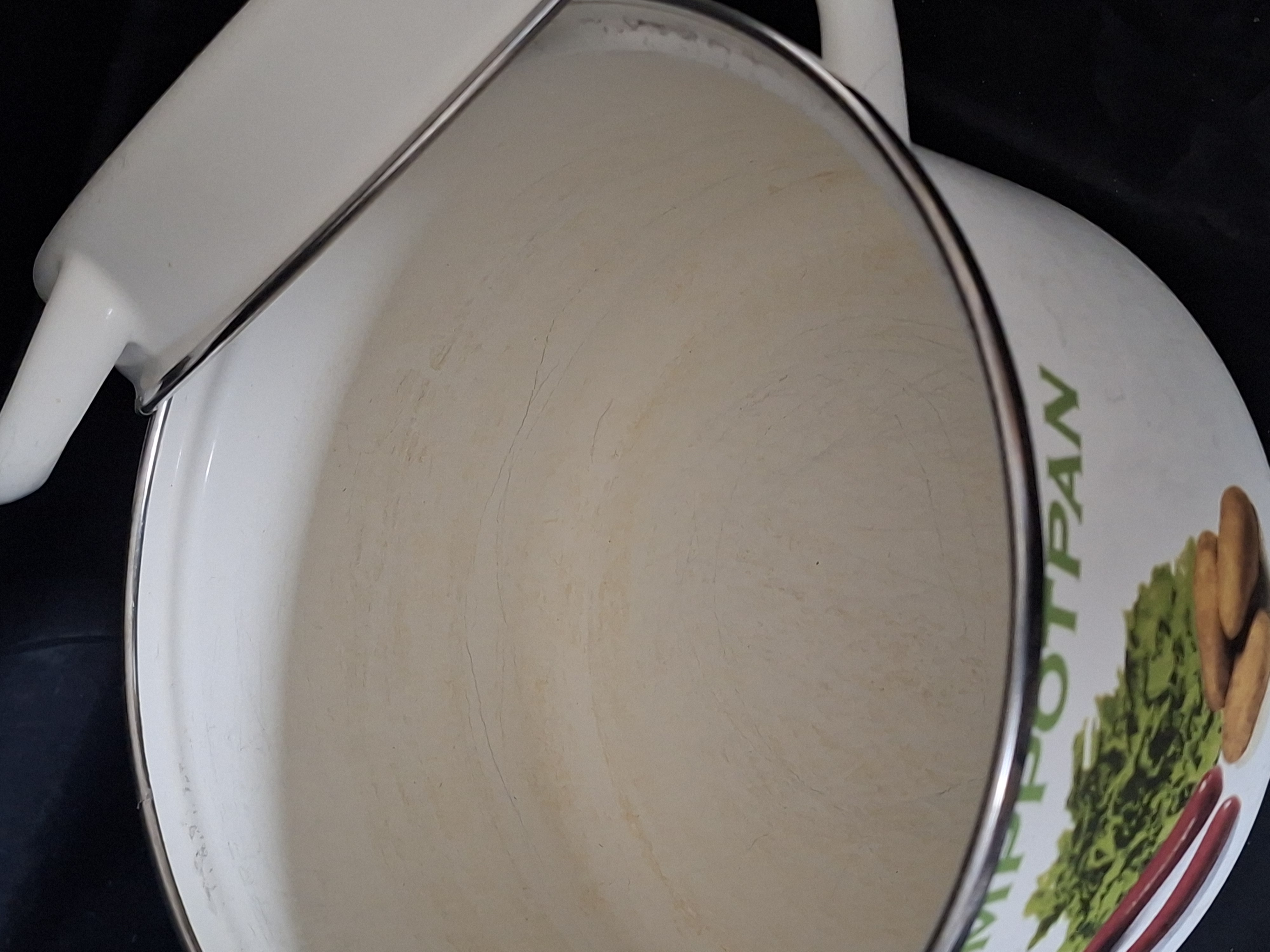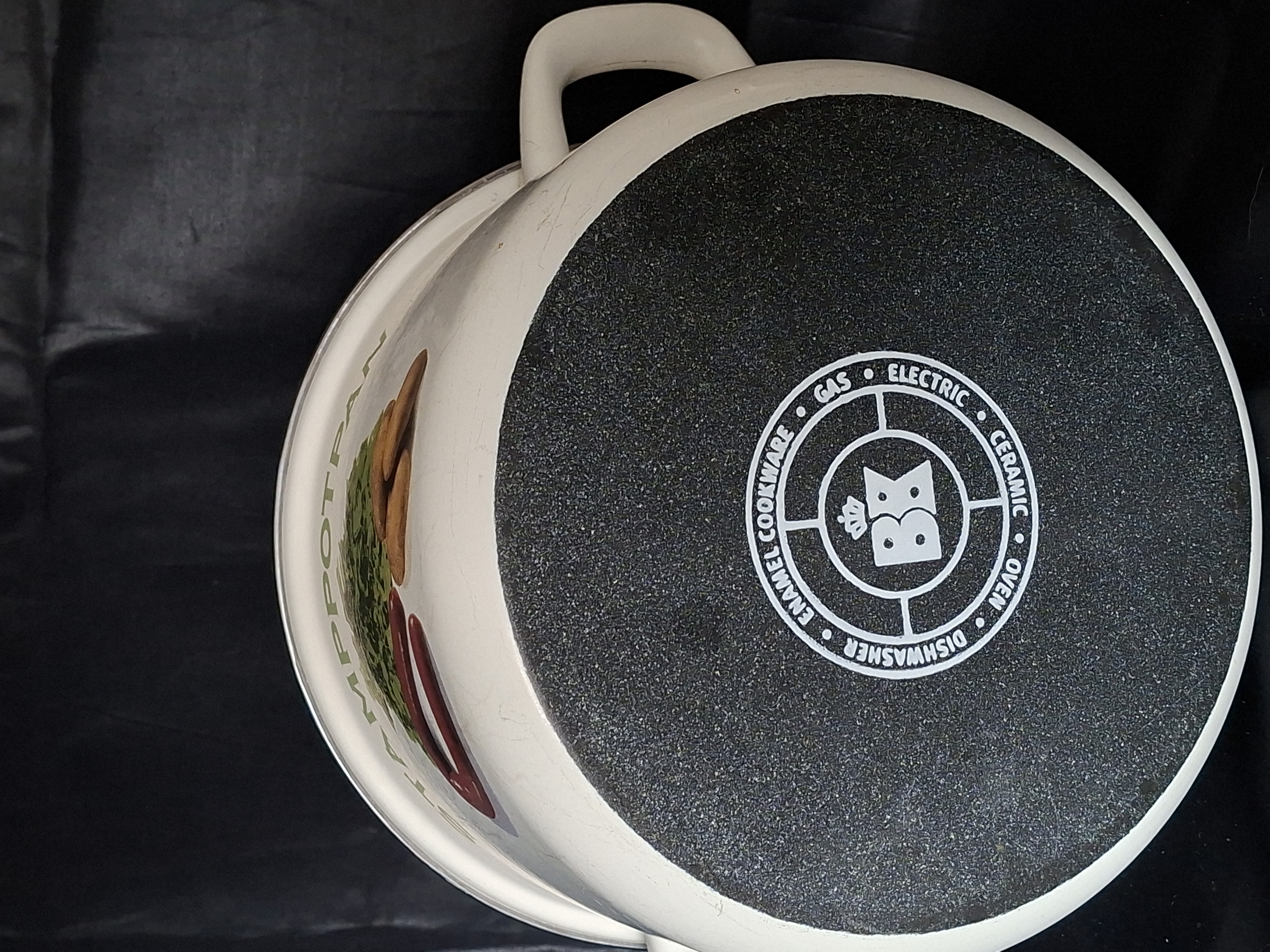 Authentieke vintage stamppotpan in emaille. Perfect voor het maken van traditionele stamppot. Geschikt voor liefhebbers van vintage keukenspullen en retro interieur. Decoratief én functioneel. Gebruikt maar in nette vintage staat met normale gebruikssporen.