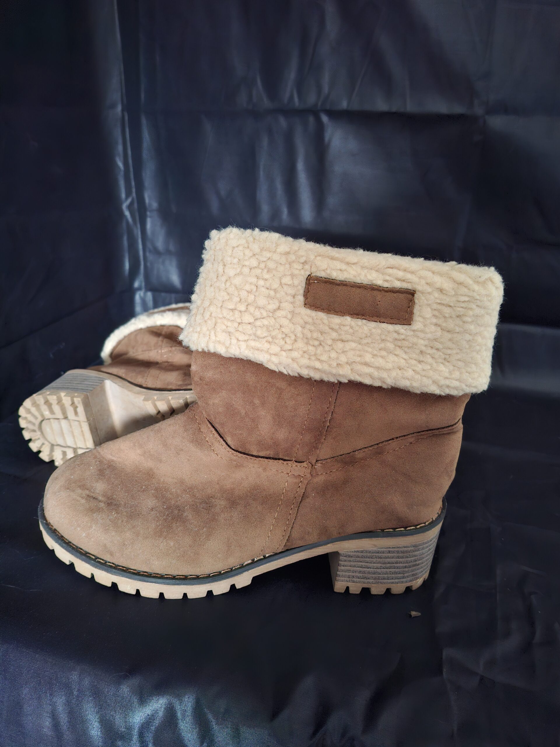 Winterlaarzen Camel Suède Teddy Voering Blokhak Maat 39