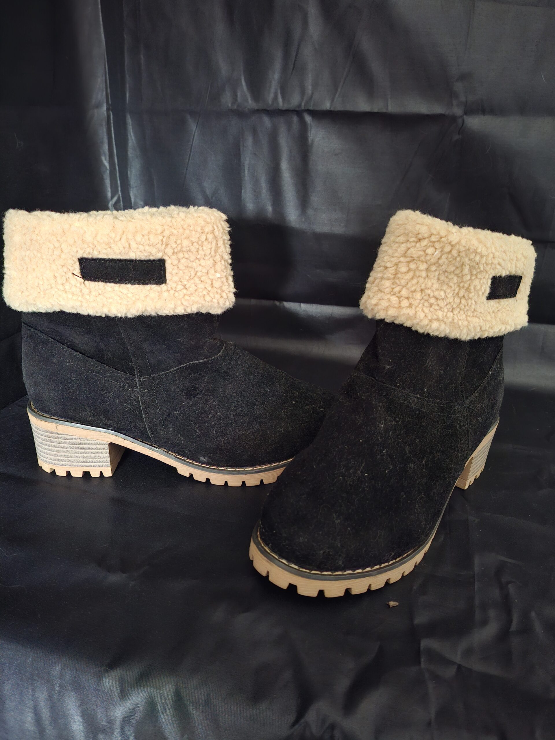 Winterlaarzen Zwart Suède Teddy Voering Blokhak Maat 39