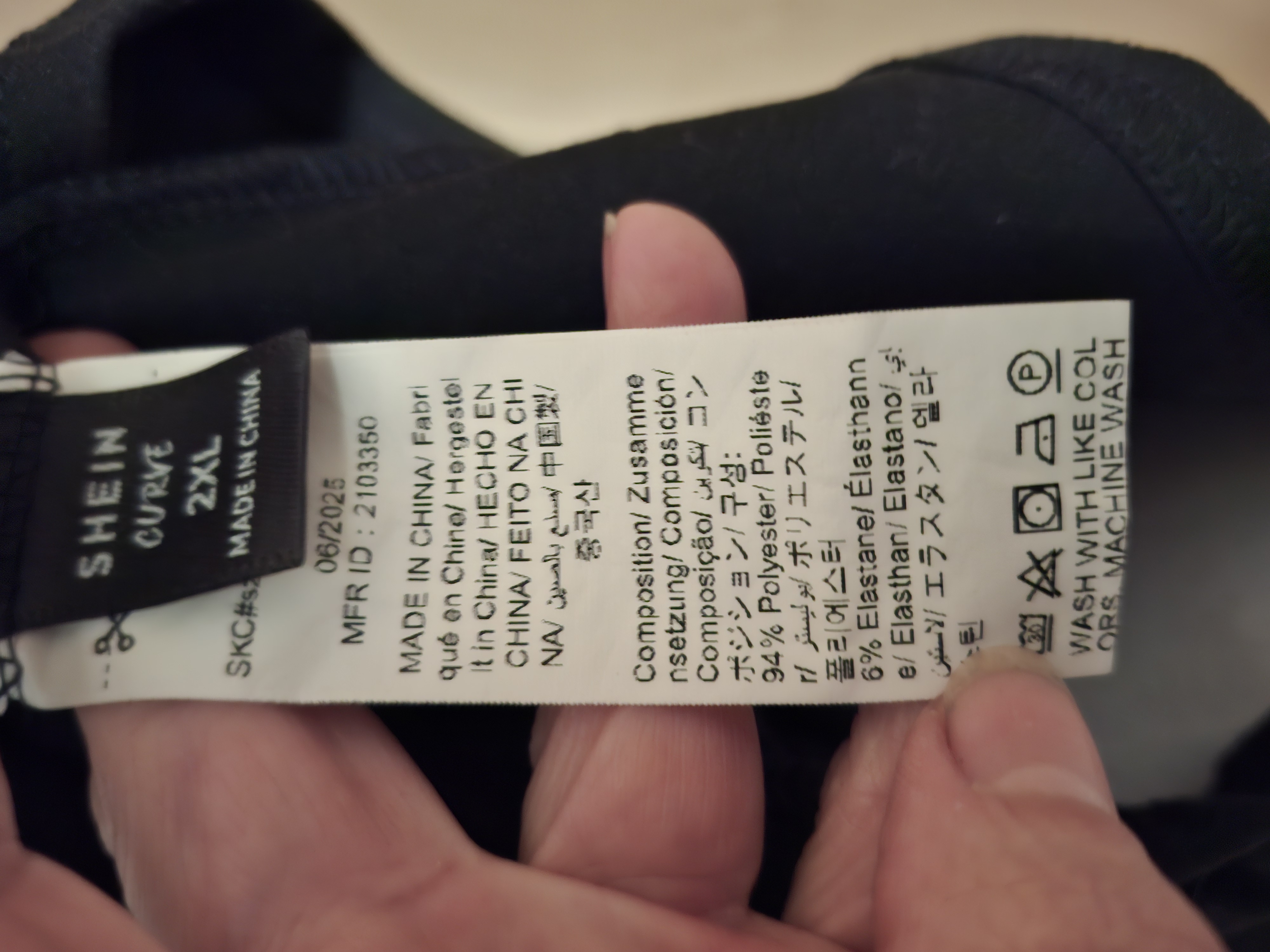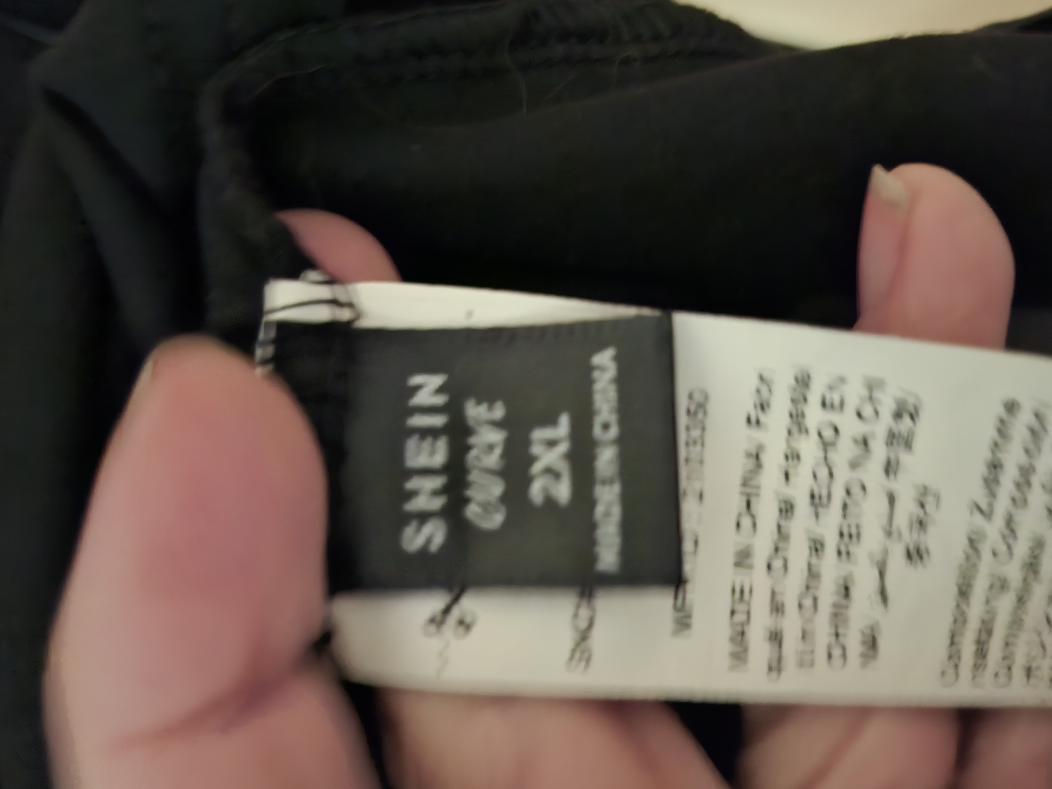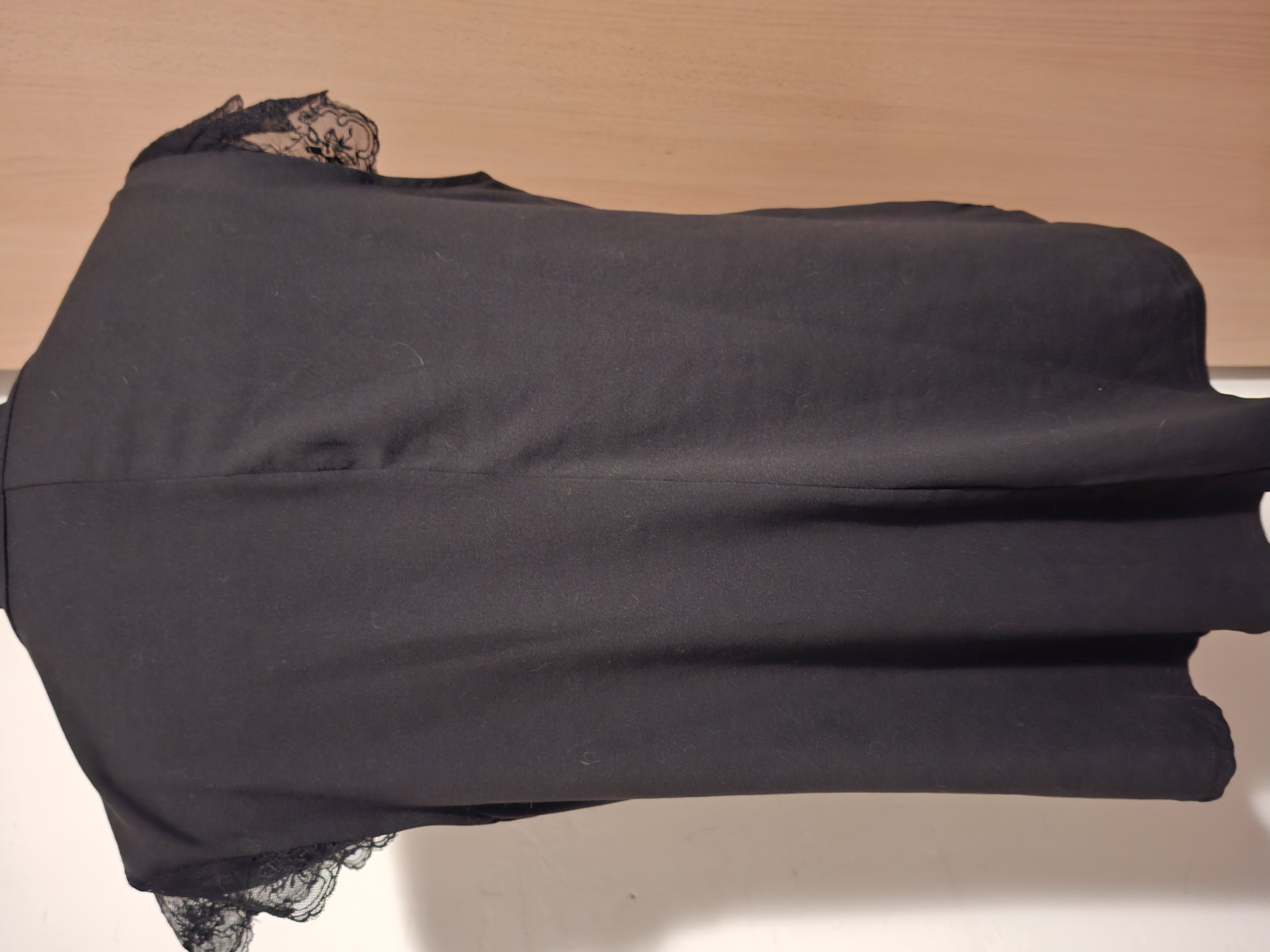 Zwarte top met prachtige kant mouwtjes en V-hals met rimpeling. Shein Curve collectie. Maat 2XL. Materiaal: 94% Polyester, 6% Elastane. Made in China. Elegant model met kant details op de mouwen.